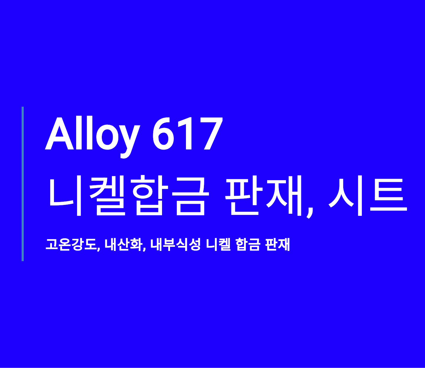 Alloy 617 재료는 니켈 44.5% minimum에 크롬-코발트-몰리브덴 합금입니다.